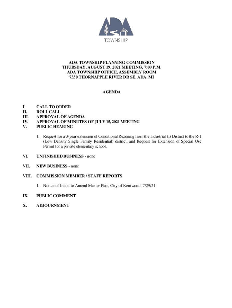 7330 THORNAPPLE RIVER DR SE, ADA, AGENDA.