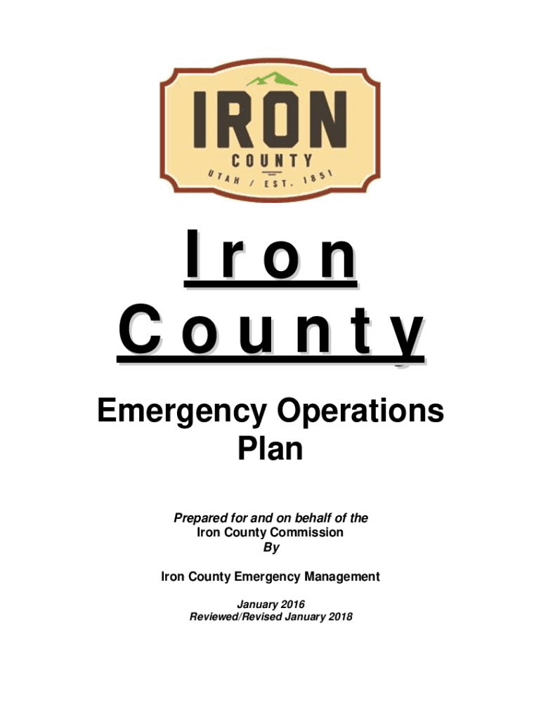 Iron County Emergency Operations Plan Prepared for and on behalf of the Iron County Commission By Iron County Emergency Management January 2016 Reviewed/Revised January 20182 Iron County Emergency