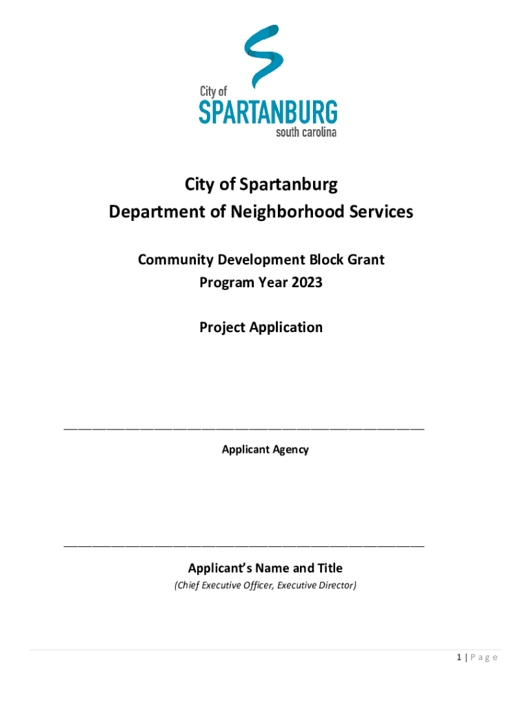 City of Spartanburg Department of Neighborhood Services Community Development Block Grant Program Year 2023 Project Application___Applicant Agency___Applicants Name and Title (Chief Executive Officer,