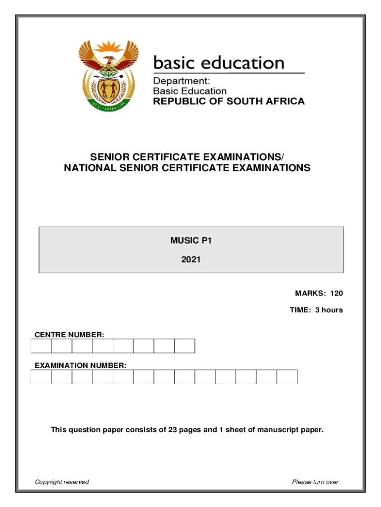 SENIOR CERTIFICATE EXAMINATIONS/ NATIONAL SENIOR CERTIFICATE EXAMINATIONSMUSIC P1 2021MARKS: 120 TIME: 3 hoursCENTRE NUMBER:EXAMINATION NUMBER:This question paper consists of 23 pages and 1 sheet