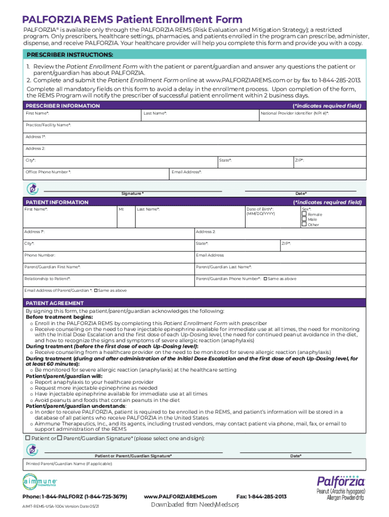 Get the free Palforzia REMS Patient Enrollment Form - NeedyMeds