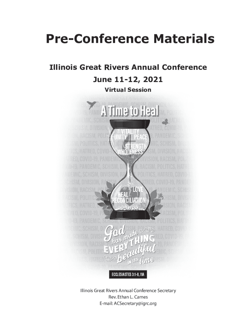 Conference Materials Illinois Great Rivers Annual Conference June 1112, 2021 Virtual SessionECCLESIASTES 3:18, 11A Illinois Great Rivers Annual Conference Secretary Rev. Ethan L. Barnes Email: ACSecretary@igrc.orgGreetings