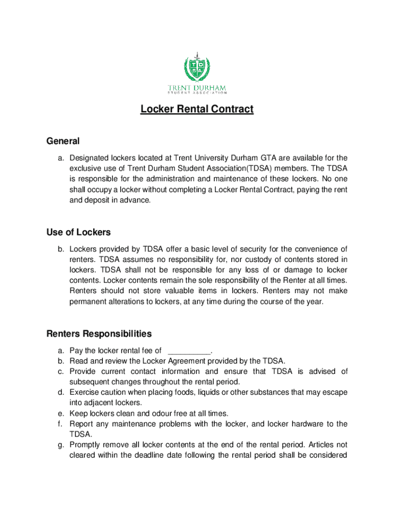 Get the free Locker Rental Contract - Trent Durham Student Association