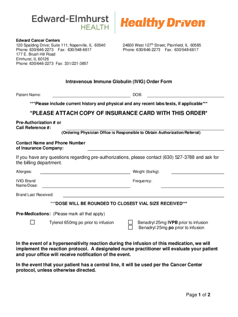 Get the free Intravenous Immune Globulin (IVIG) Order Form