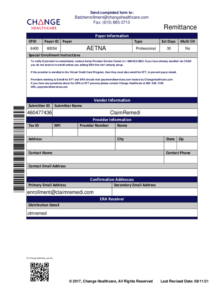 Payer ID: 60054Aetna 835 EDI Enrollment Instructions: Complete the enrollment using the providers billing/group information as credentialed with this payer. Once completed, save for your records,