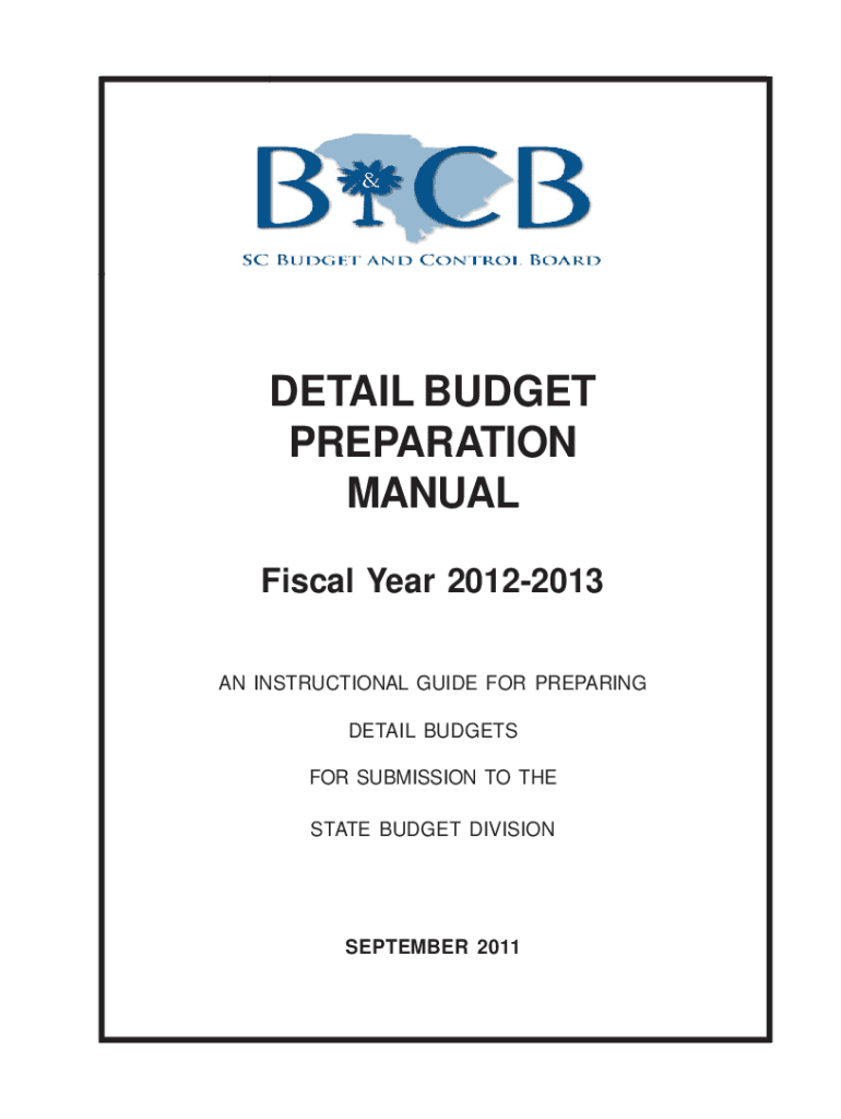 DETAIL BUDGET PREPARATION MANUAL Fiscal Year 20122013 AN INSTRUCTIONAL GUIDE FOR PREPARING DETAIL BUDGETS FOR SUBMISSION TO THE STATE BUDGET DIVISIONSEPTEMBER 2011DETAIL BUDGET PREPARATION MANUAL