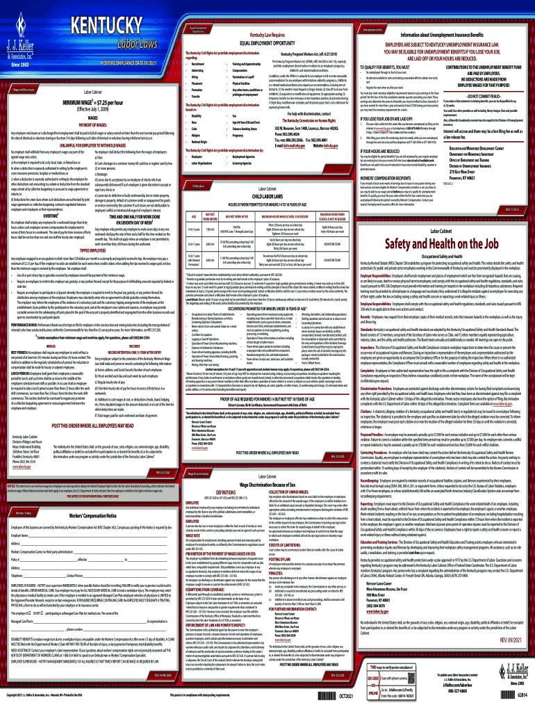 KENTUCKYEqual Employment OpportunityLabor Language and Hour LawsLabor CabinetMINIMUM WAGE $7.25 per hour WAGES PAYMENT OF WAGES: Any employee who leaves or is discharged from employment shall be paid