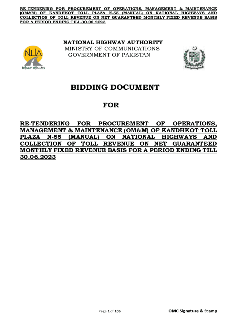RENDERING FOR PROCUREMENT OF OPERATIONS, MANAGEMENT & MAINTENANCE (OMM) OF SANDLOT TOLL PLAZA N55 (MANUAL) ON NATIONAL HIGHWAYS AND COLLECTION OF TOLL REVENUE ON NET GUARANTEED MONTHLY FIXED REVENUE