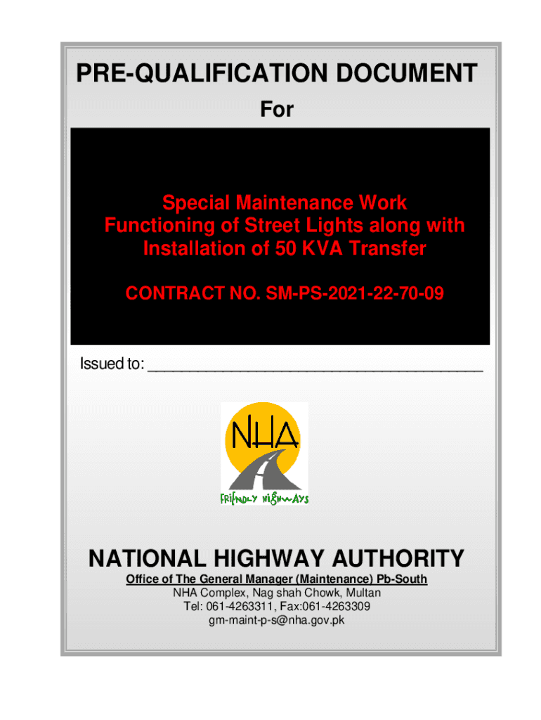 CONTRACT NO. SMPS2021227009Issued to: ___NATIONAL HIGHWAY AUTHORITY