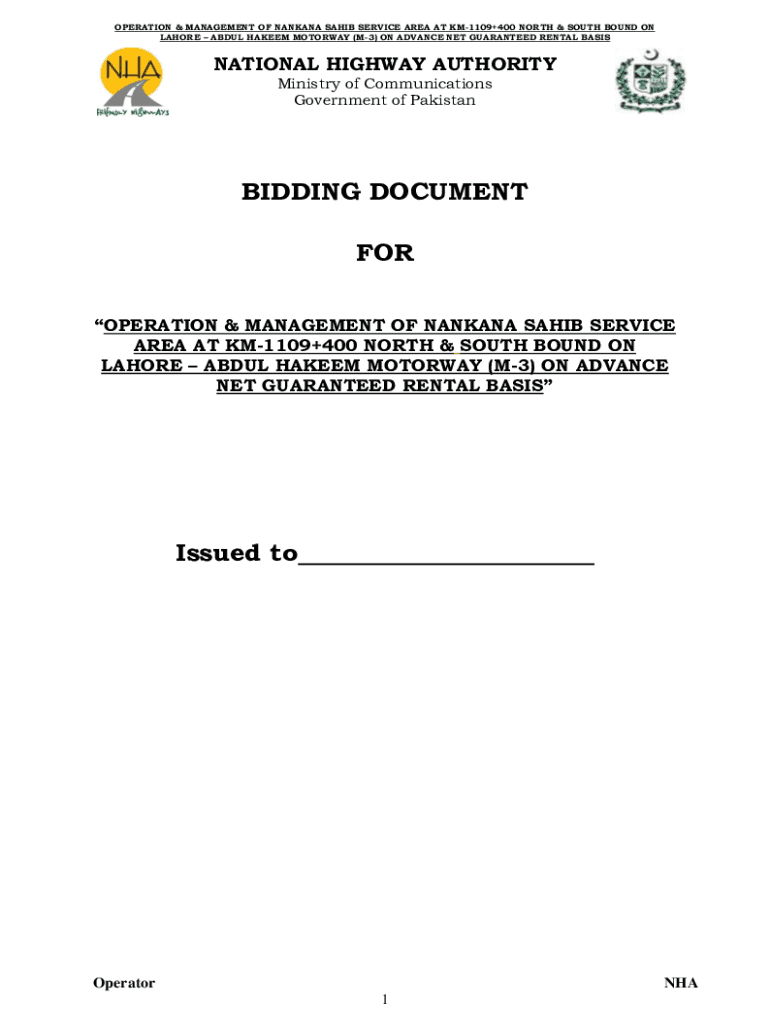 LAHORE ABDUL HAKEEM FREEWAY (M3) ON ADVANCE NET GUARANTEED RENTAL BINATIONAL HIGHWAY AUTHORITY