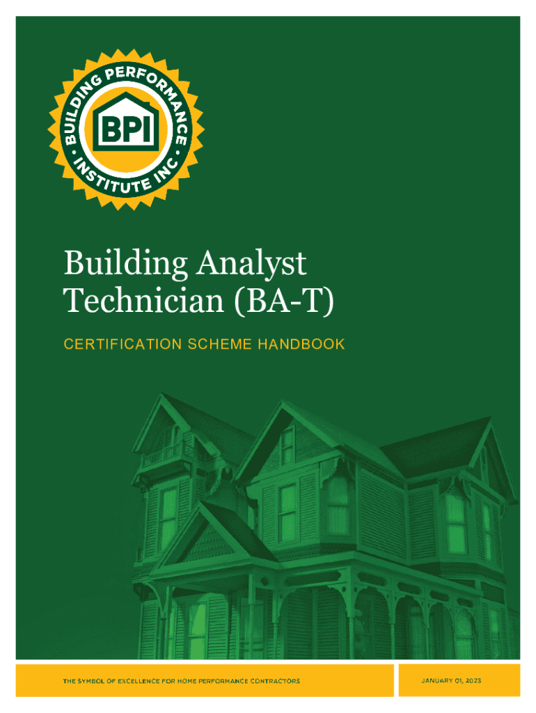 Building Analyst Technician (BAT) CERTIFICATION SCHEME HANDBOOKNotice Anyone interested in becoming BPI certified as a Building Analyst Technician, will need to know the scope of the certification