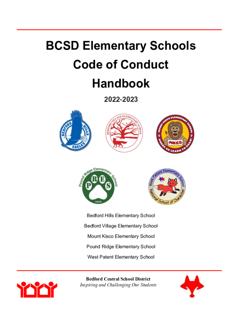 BSD Elementary Schools Code of Conduct Handbook 20202021 20222023 2019 2020Bedford Hills Elementary School Bedford Village Elementary School Mount Disco Elementary School Pound Ridge Elementary School