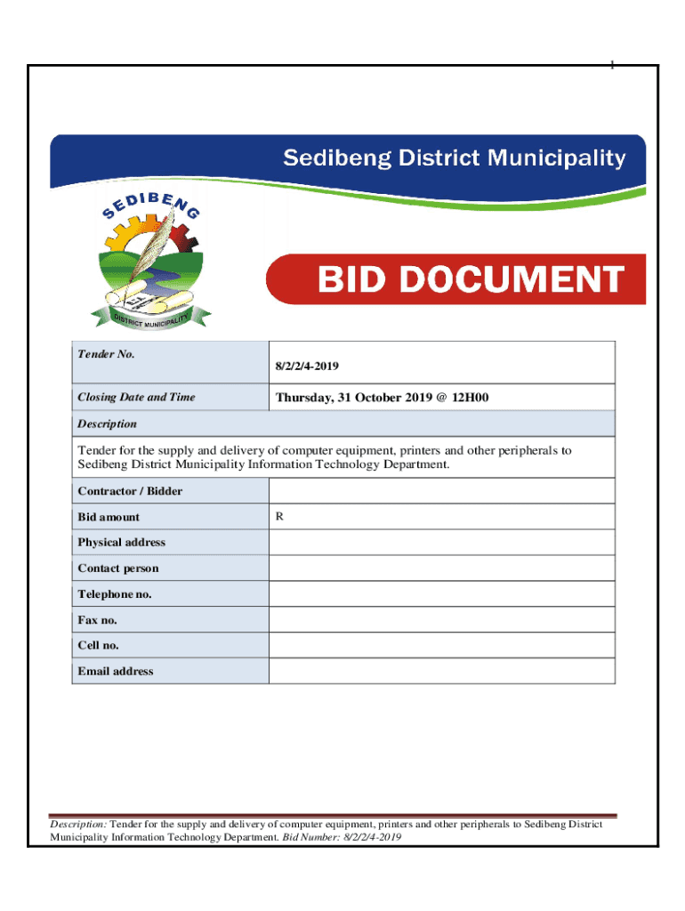 Closing Date and Time Thursday, 31 October 2019 @ 12H00DescriptionTender for the supply and delivery of computer equipment, printers and other peripherals to