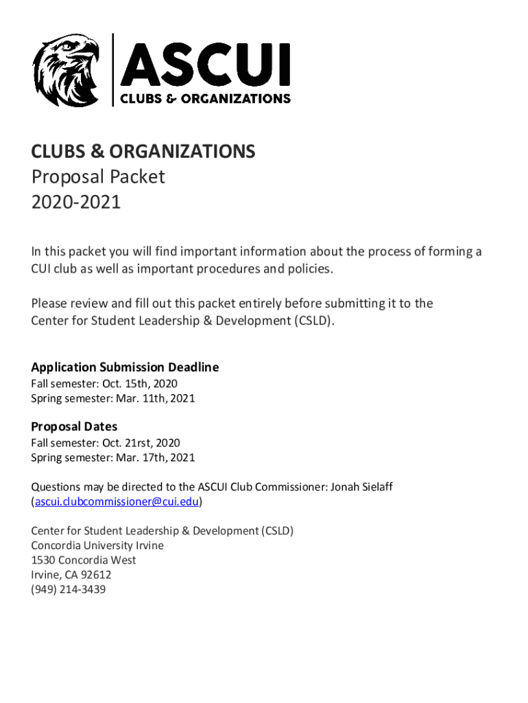 CLUBS & ORGANIZATIONS Proposal Packet 20202021 In this packet you will find important information about the process of forming a CUT club as well as important procedures and policies. Please review