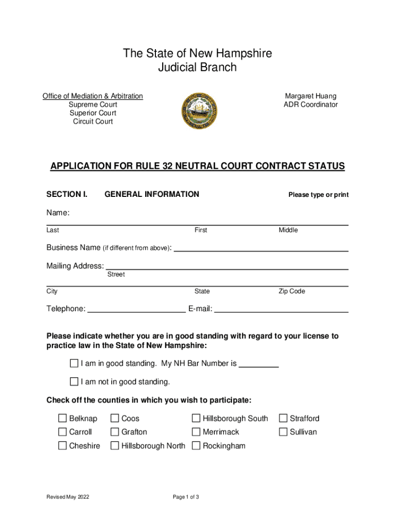 Circuit CourtAPPLICATION FOR RULE 32 NEUTRAL COURT CONTRACT