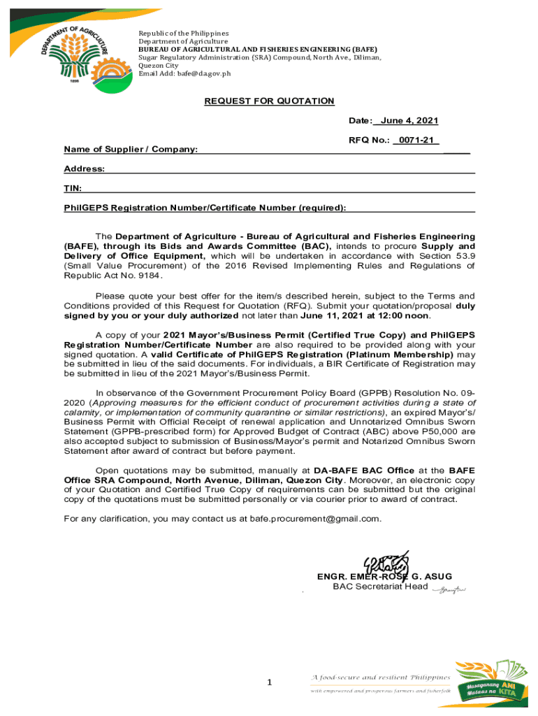 Get the free Bureau of Agricultural and Fisheries Engineering - BAFE