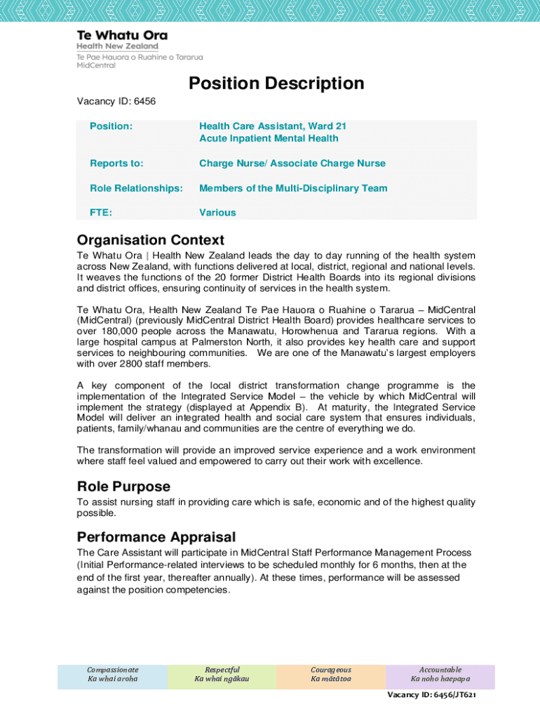 Position Description Vacancy ID: 6456 Position:Health Care Assistant, Ward 21 Acute Inpatient Mental HealthReports to:Charge Nurse/ Associate Charge Nurse Role Relationships:Members of the Multidisciplinary