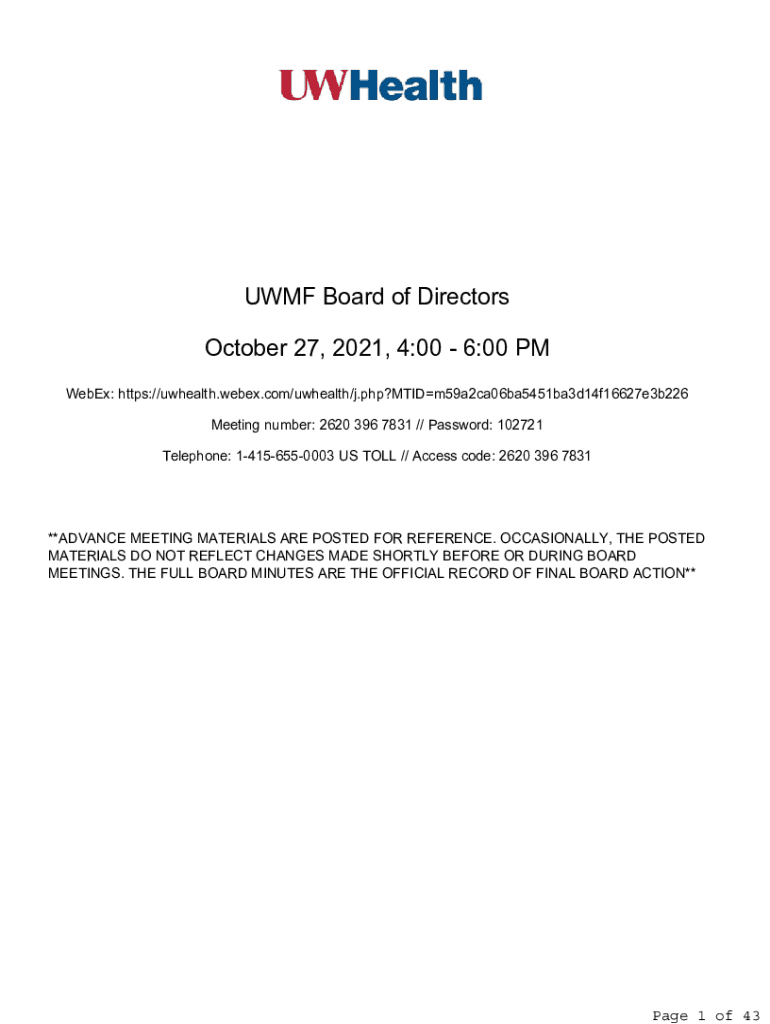 Do Not Remove Used for Spacing Do Not Remove Used for Spacing Do Not Remove Used for Spacing UMF Board of Directors October 27, 2021, 4:00 6:00 PM WebEx: https://uwhealth.webex.com/uwhealth/j.php?MTIDm59a2ca06ba5451ba3d14f16627e3b226
