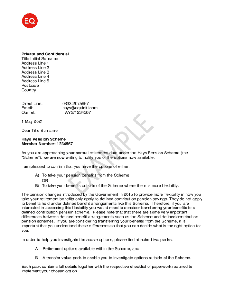 Private and Confidential Title Initial Surname Address Line 1 Address Line 2 Address Line 3 Address Line 4 Address Line 5 Postcode CountryDirect Line: Email: Our ref:0333 2075957 hays@equiniti.com