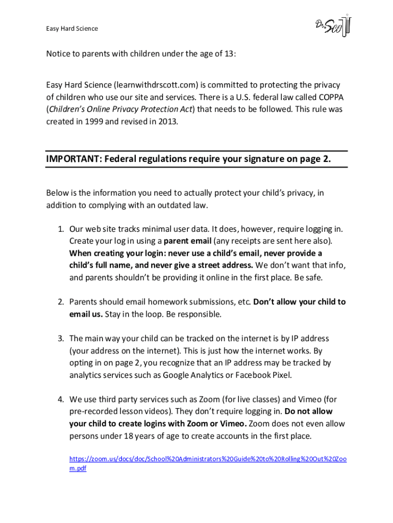 Easy Hard ScienceNotice to parents with children under the age of 13: Easy Hard Science (learnwithdrscott.com) is committed to protecting the privacy of children who use our site and services. There