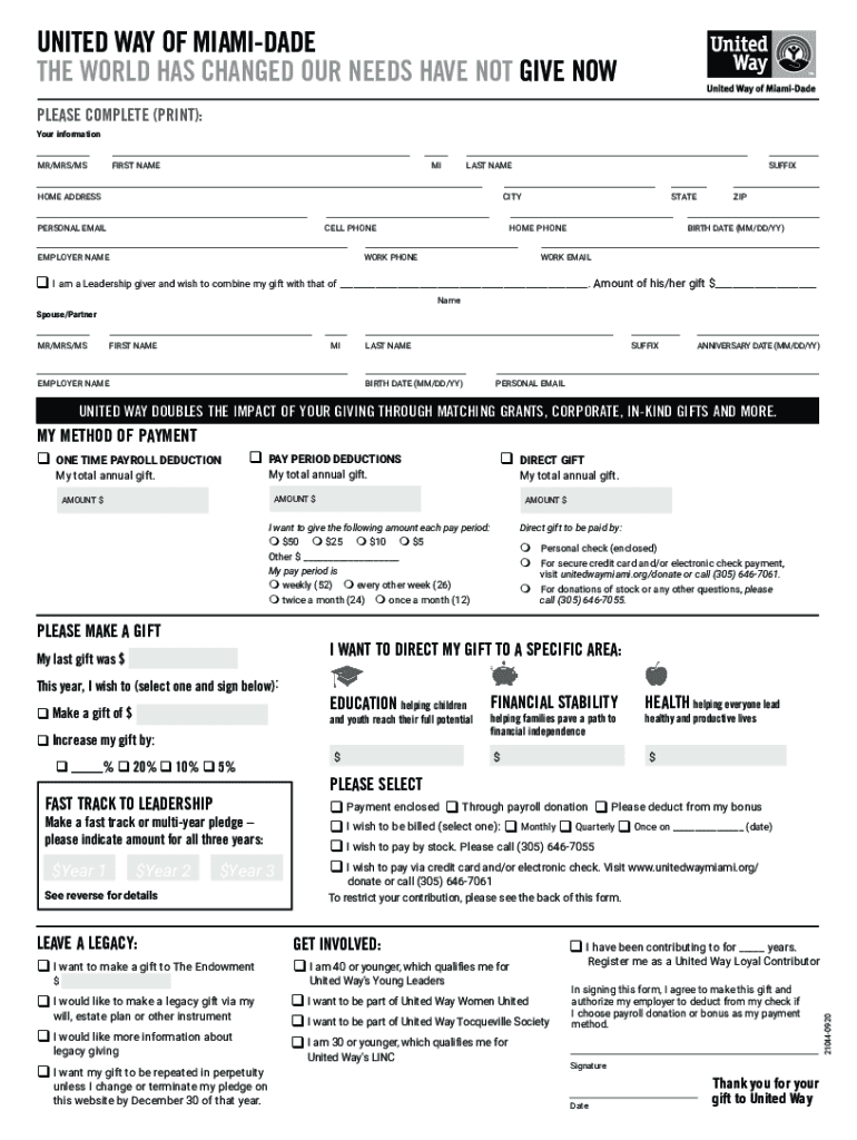 Email, fax, or share your united way miamivolunteer donate form via URL. You can also download, print, or export forms to your preferred cloud storage service.