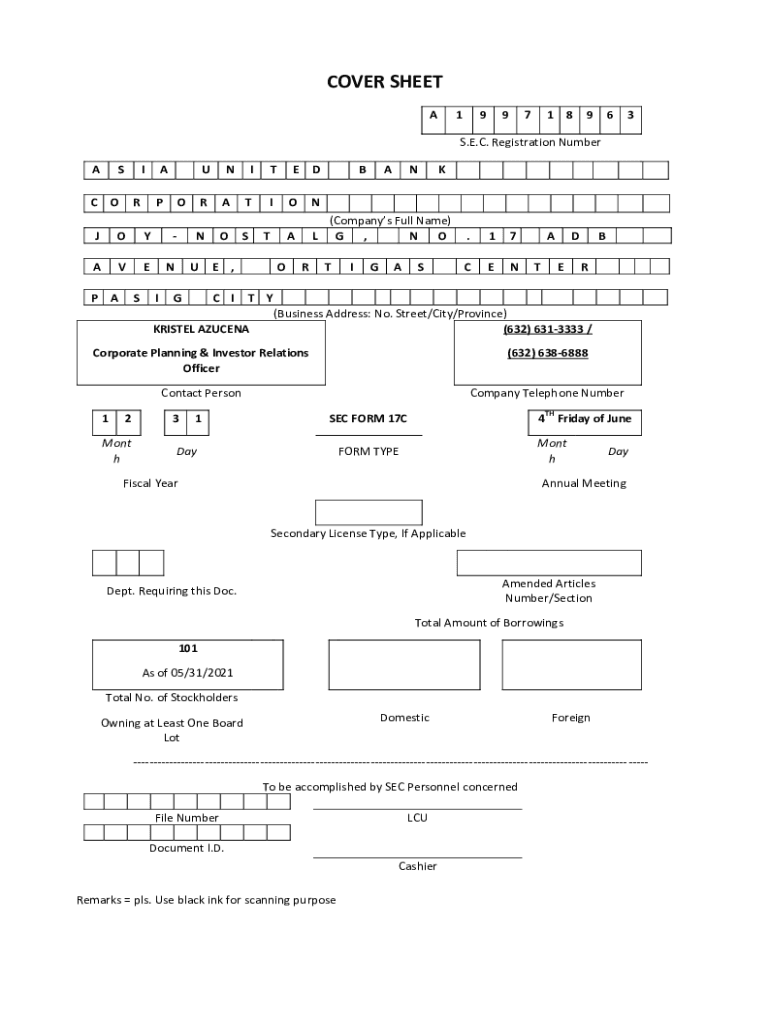 Get the free Print SEC Form 17-C.tif (4 pages) - Asia United Bank
