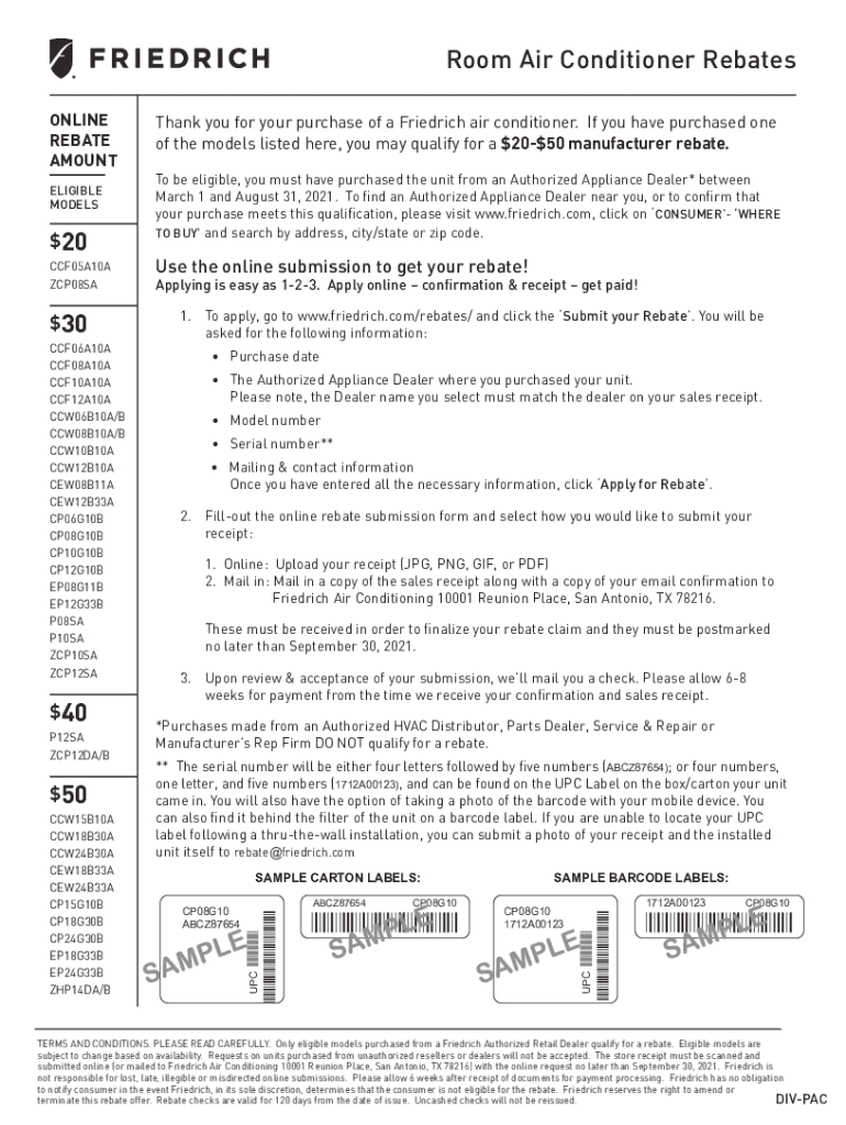 Get the free Friedrich Room Air Conditioner Rebate (up to $50 value)