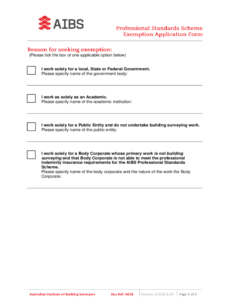 Get the free A018 PSS Exemption Application Form.pdf