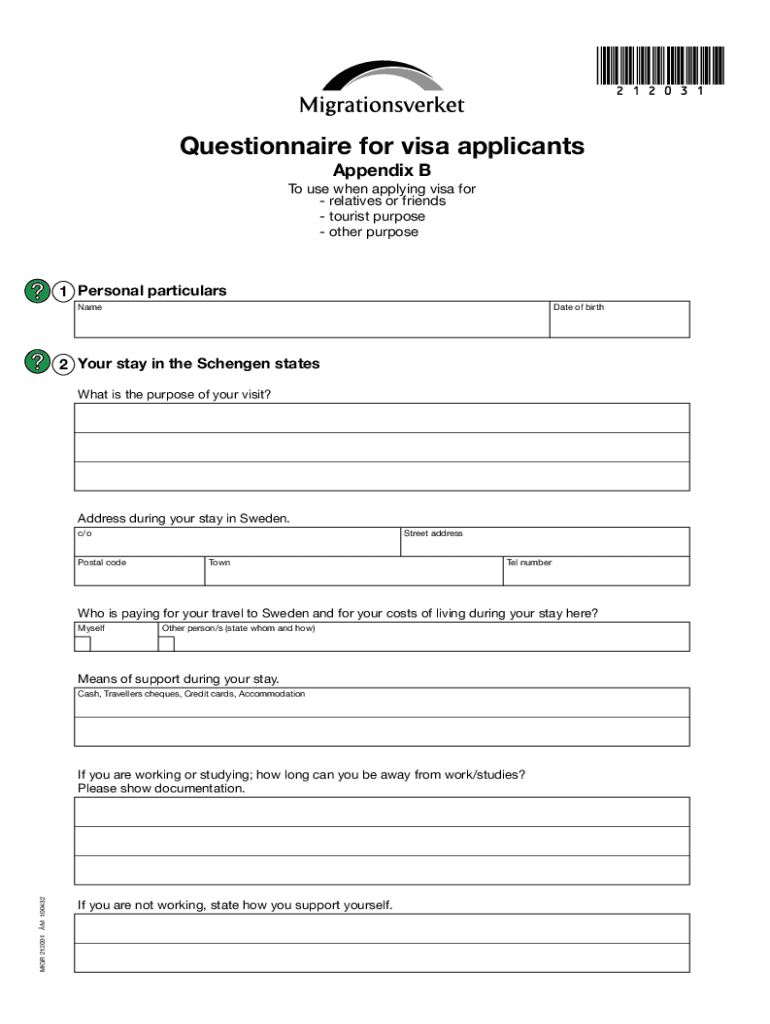Get the free Questionnaire for visa applicants - Appendix B for relatives/friends, tourist purpos...