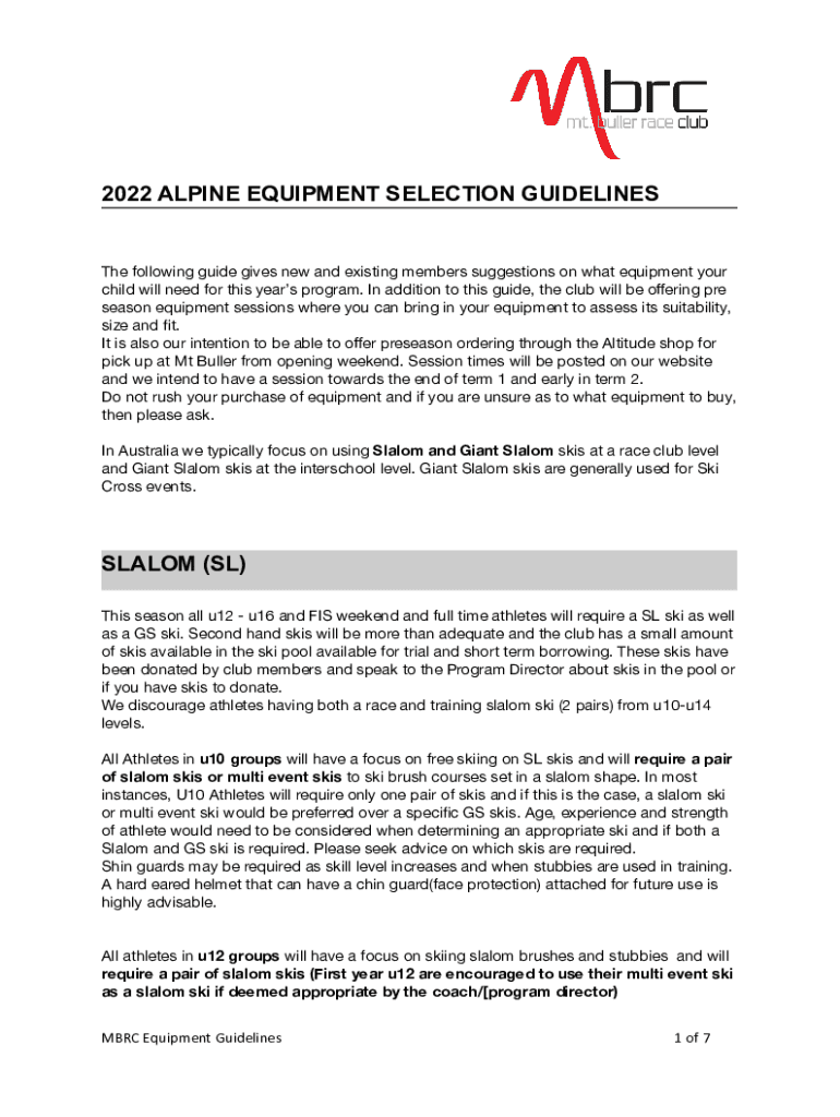 2022 ALPINE EQUIPMENT SELECTION Guidelines following guide gives new and existing members suggestions on what equipment your child will need for this year's program. In addition to this guide, the