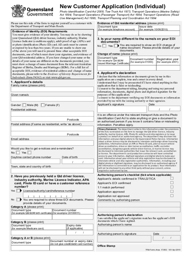 PrintResetNew Customer Application (Individual)Photo Identification Card Act 2008; Tow Truck Act 1973; Transport Operations (Marine Safety) Act 1994; Transport Operations (Passenger Transport) Act