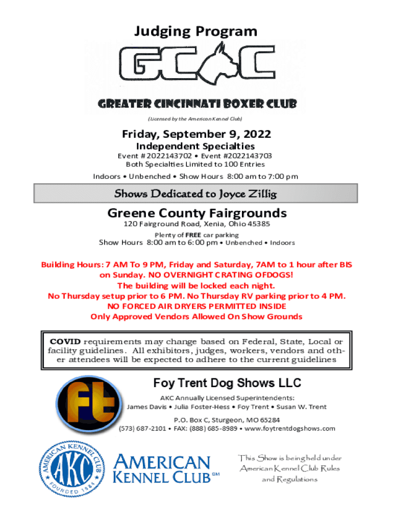 Judging Program(Licensed by the American Kennel Club)Friday, September 9, 2022,