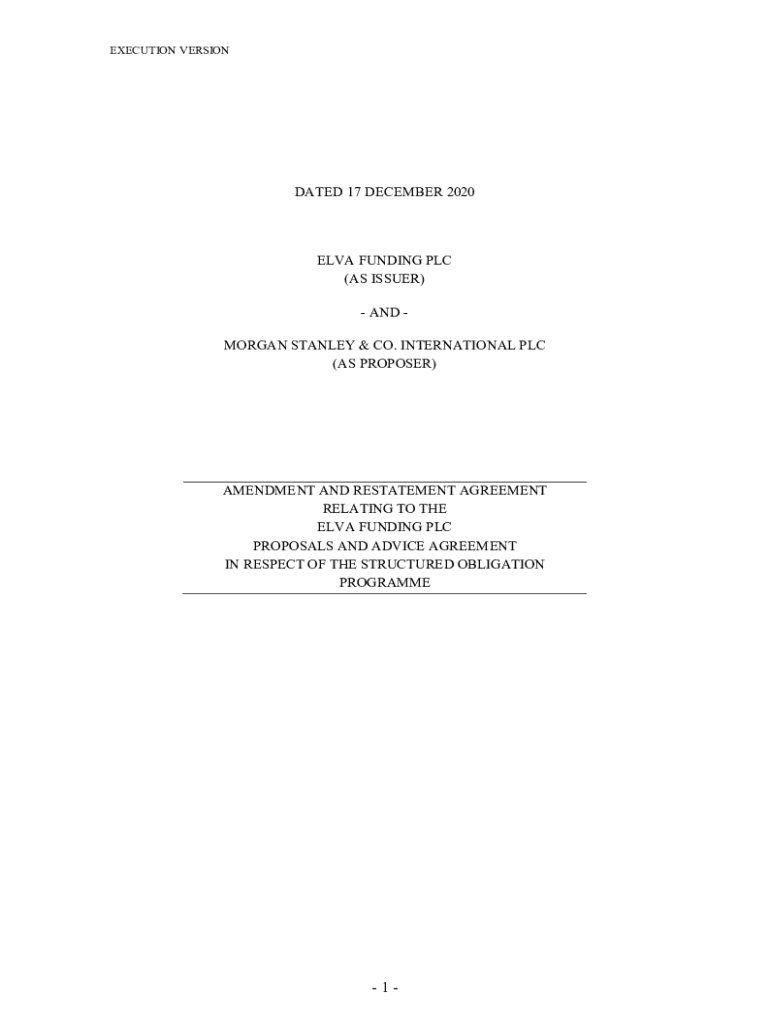 EXECUTION VERSIONED 17 DECEMBER 2020ELVA FUNDING PLC (AS ISSUER) AND MORGAN STANLEY & CO. INTERNATIONAL PLC (AS PROPOSER)AMENDMENT AND RESTATEMENT AGREEMENT RELATING TO THE ELVA FUNDING PLC PROPOSALS
