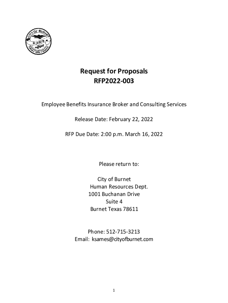 Get the free Request for Proposals RFP2022-003 - City of Burnet