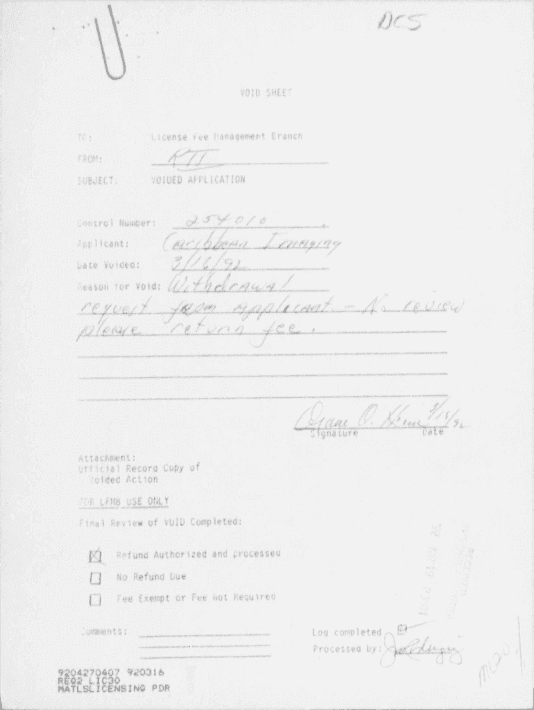 Get the free Voided matls licensing action for Caribbean Imaging & Radiation.Control