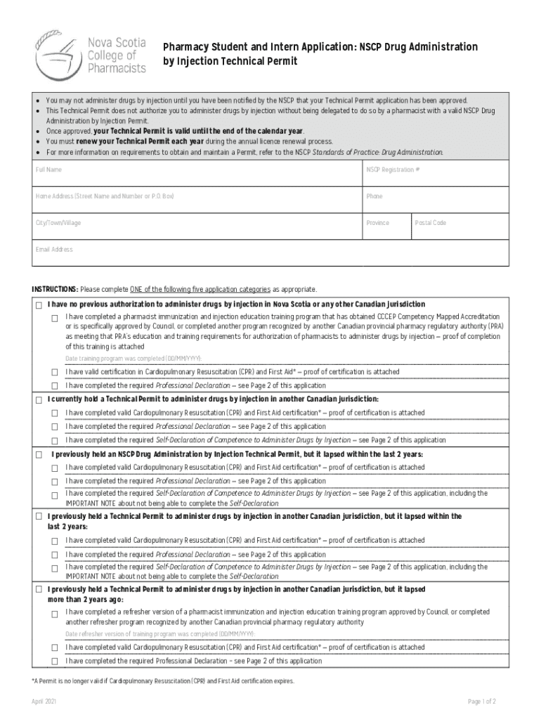 Pharmacy Student and Intern Application: ENSCP Drug Administration by Injection Technical Permit You may not administer drugs by injection until you have been notified by the ENSCP that your Technical