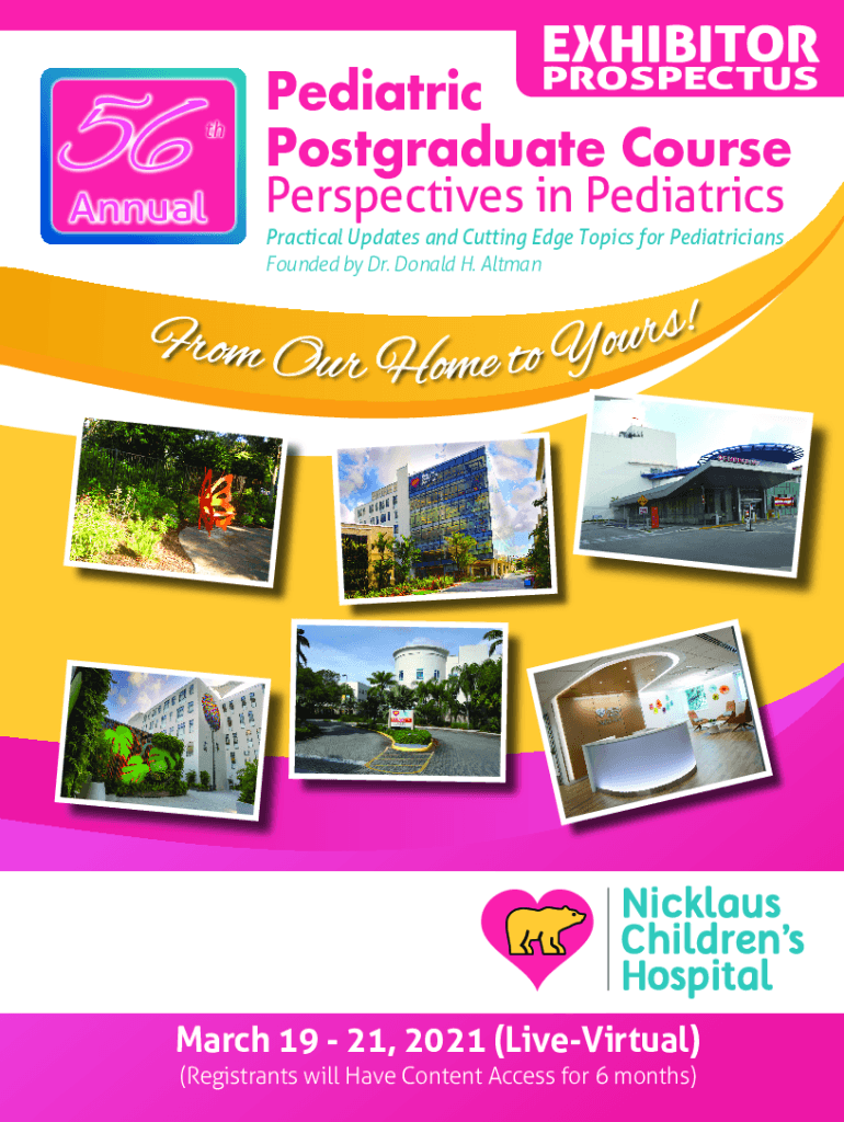 EXHIBITOR56Pediatric Postgraduate CoursePROSPECTUSthAnnualPerspectives in Pediatrics Practical Updates and Cutting Edge Topics for Pediatricians Founded by Dr. Donald H. AltmanFrom Our Home to Yours!