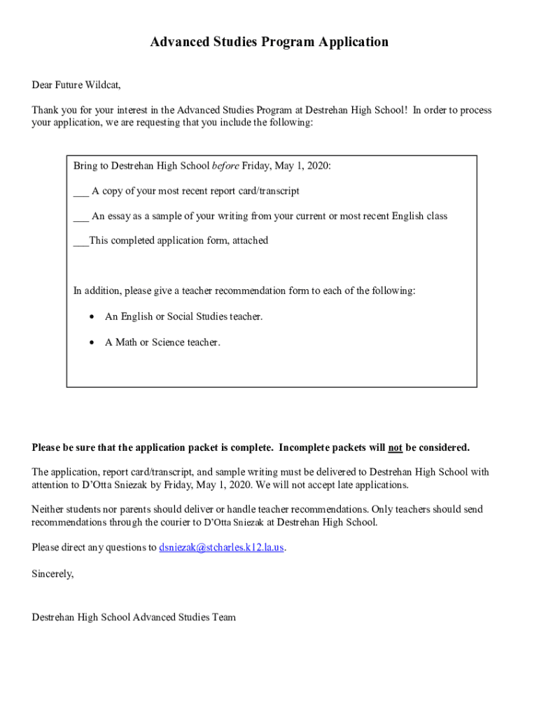 Advanced Studies Program Application Dear Future Wildcat, Thank you for your interest in the Advanced Studies Program at Esteban High School! In order to process your application, we are requesting