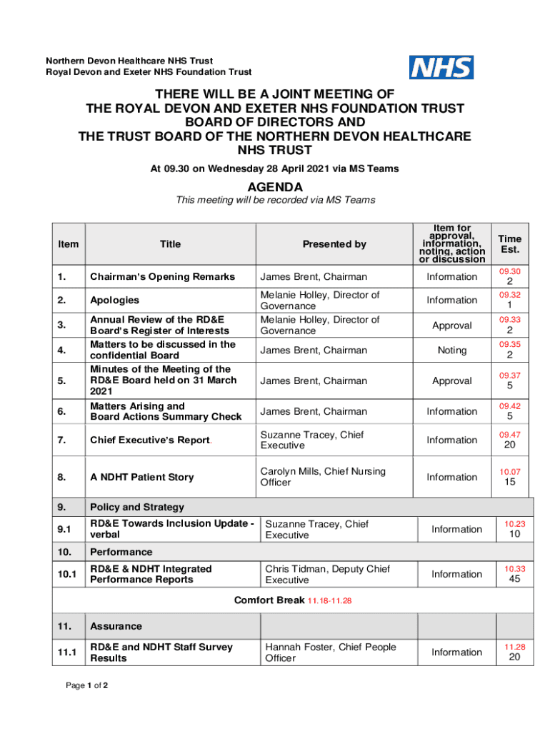 Royal Devon and Peter NHS Foundation Trustee WILL BE A JOINT MEETING OF