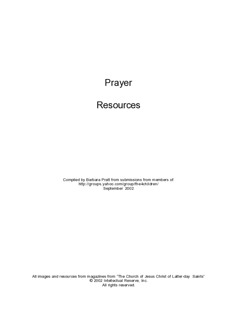 Prayer ResourcesCompiled by Barbara Pratt from submissions from members of: http://groups.yahoo.com/group/fhe4children/ September 2002All images and resources from magazines from The Church of Jesus