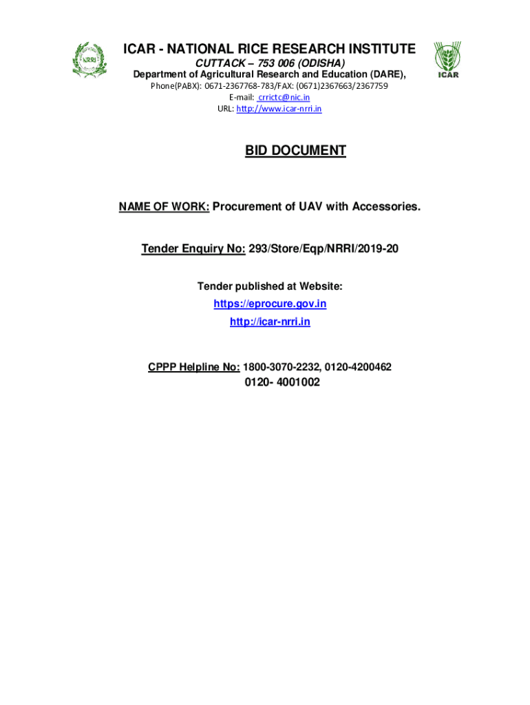 CAR NATIONAL RICE RESEARCH INSTITUTE CUTTACK 753 006 (ODISHA) Department of Agricultural Research and Education (DARE), Phone(PBX): 06712367768783/FAX: (0671)2367663/2367759 Email: crrictc@nic.in