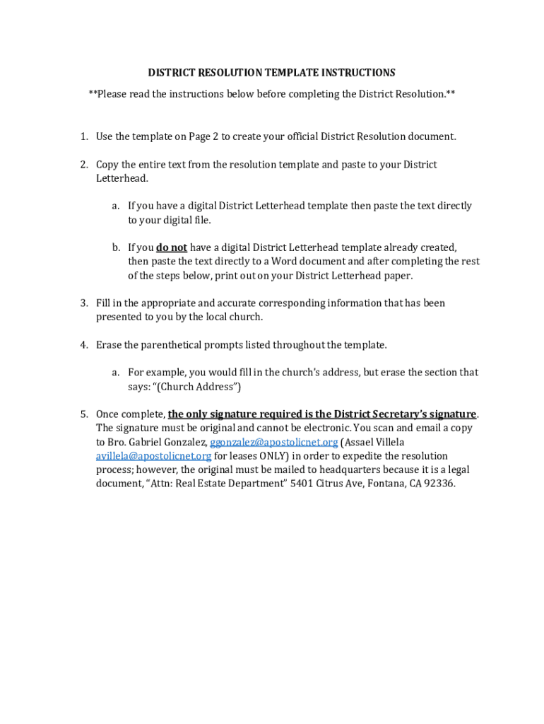 How to fill out district resolution template instructions