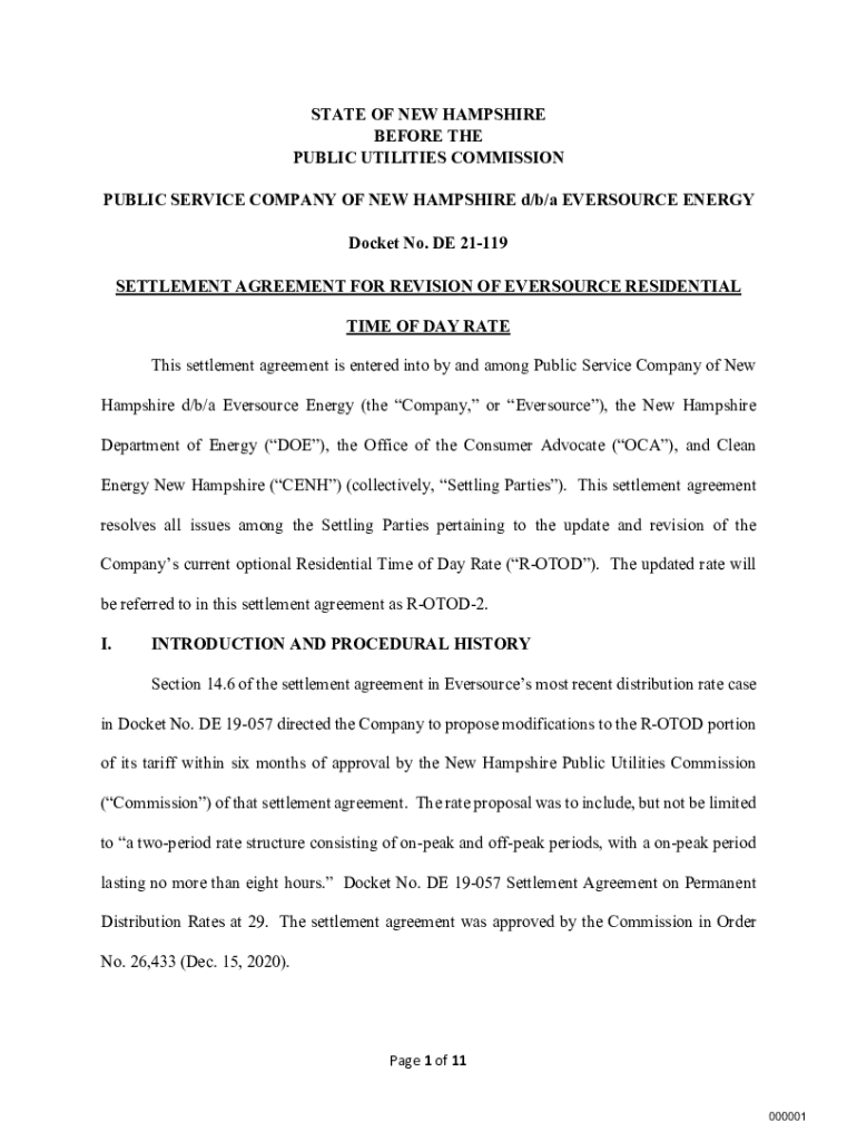 STATE OF NEW HAMPSHIRE BEFORE THE PUBLIC UTILITIES COMMISSION PUBLIC SERVICE COMPANY OF NEW HAMPSHIRE d/b/a RESOURCE ENERGY Docket No. DE 21119 SETTLEMENT AGREEMENT FOR REVISION OF RESOURCE RESIDENTIAL