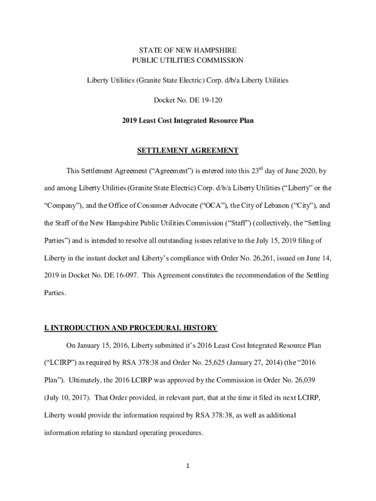 STATE OF NEW HAMPSHIRE PUBLIC UTILITIES COMMISSION Liberty Utilities (Granite State Electric) Corp. d/b/a Liberty Utilities Docket No. DE 19120 2019 Least Cost Integrated Resource PlanSETTLEMENT AGREEMENT