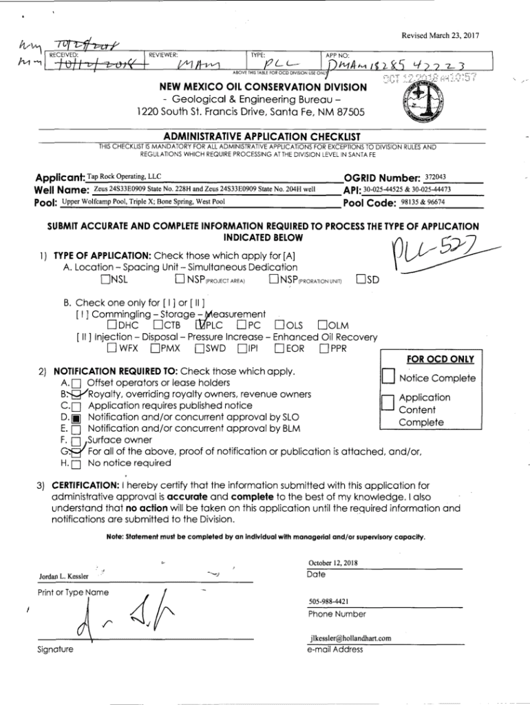 Revised March 23, 2017/i/WI \'Am m\' /&!RECEIVED:REVIEWER:TYPE:APP NO:K)/ / y/paw/4^/d*/: oz_ABOVE THIS TABLE FOR OCD DIVISION USE ONL1 NEW MEXICO OIL CONSERVATION DIVISION Geological & Engineering