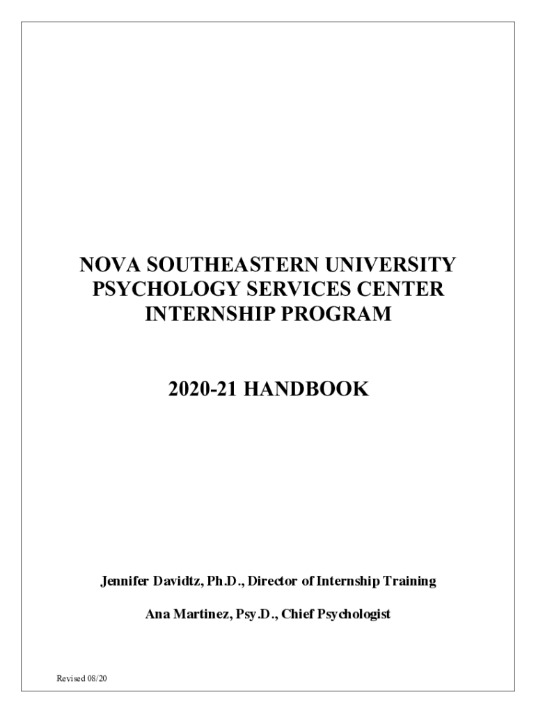 NOVA SOUTHEASTERN UNIVERSITY PSYCHOLOGY SERVICES CENTER INTERNSHIP PROGRAM 202021 HANDBOOK Jennifer David, Ph.D., Director of Internship Training Ana Martinez, Pay. D., Chief PsychologistRevised 08/20Table
