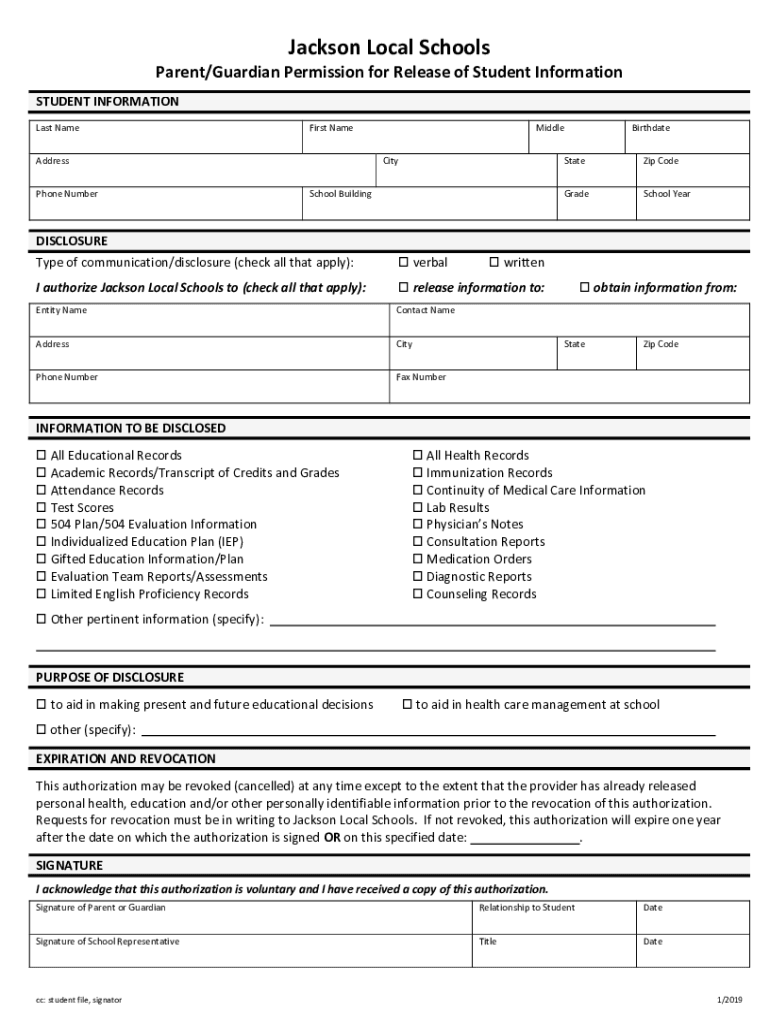 Parent/Guardian Permission for Release of Student Information