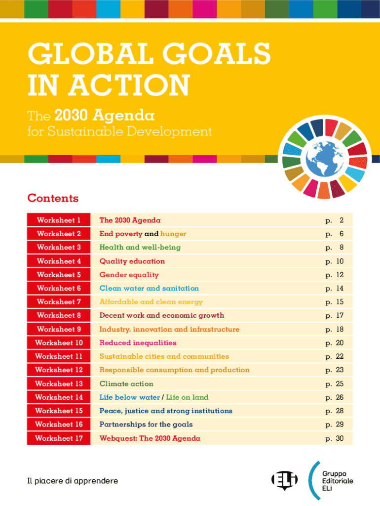GLOBAL GOALS IN ACTION The 2030 Agenda for Sustainable DevelopmentContents Worksheet 1The 2030 Agenda.2Worksheet 2End poverty and hunger.6Worksheet 3Health and wellbeing.8Worksheet 4Quality education.10Worksheet