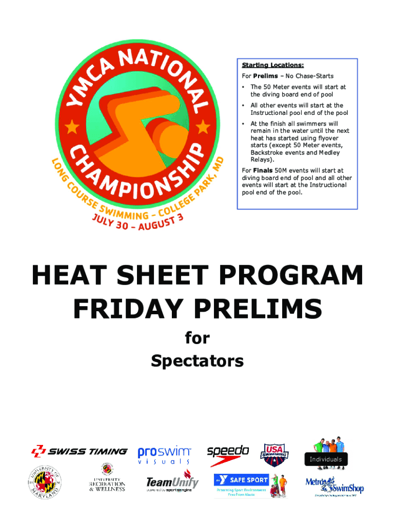 Get the free HEAT SHEET PROGRAM WEDNESDAY PRELIMS - ymca ymcaswimminganddiving