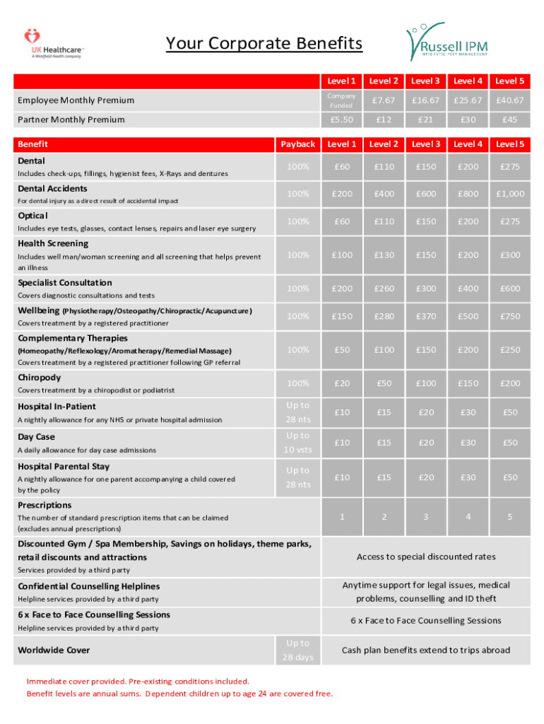 Your Corporate Benefits Level 1Level 2Level 3Level 4Level 5Company Funded7.6716.6725.6740.675.5012213045PaybackLevel 1Level 2Level 3Level 4Level 5100%60110150200275100%2004006008001,000100%60110150200275100%100130150200300100%200260300400600100%150280370500750100%50100150200250100%2050100150200Up